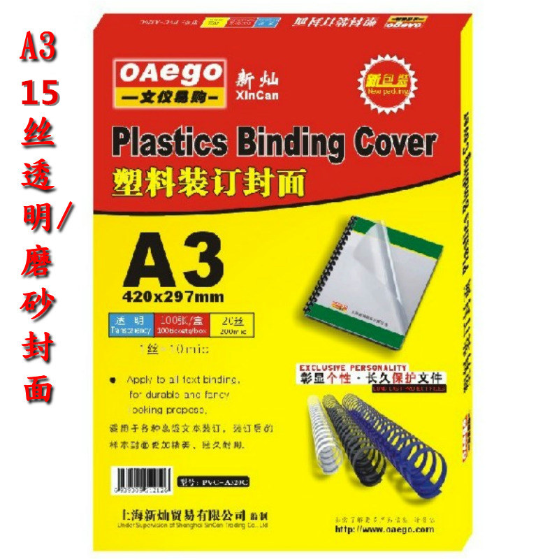 订封面 15丝透明100张装 A3塑料装 PVC透明装 订胶片 A4装