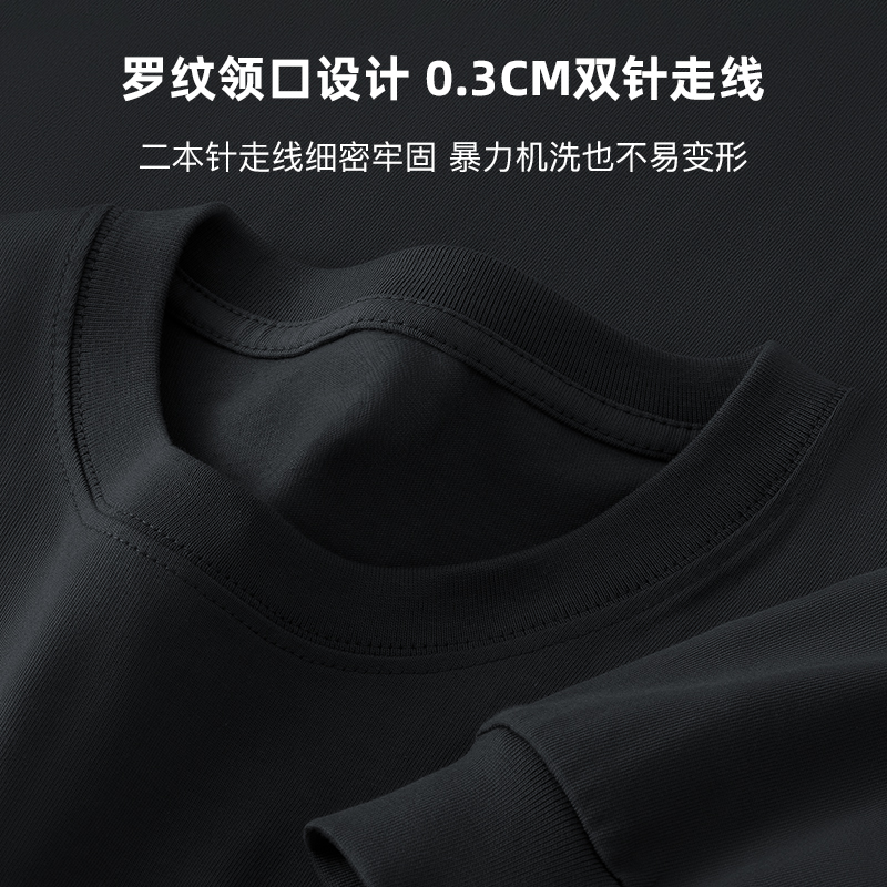 圆领纯色上衣服宽松全棉内搭打底衫 长袖 重磅纯棉T恤男士 300g美式