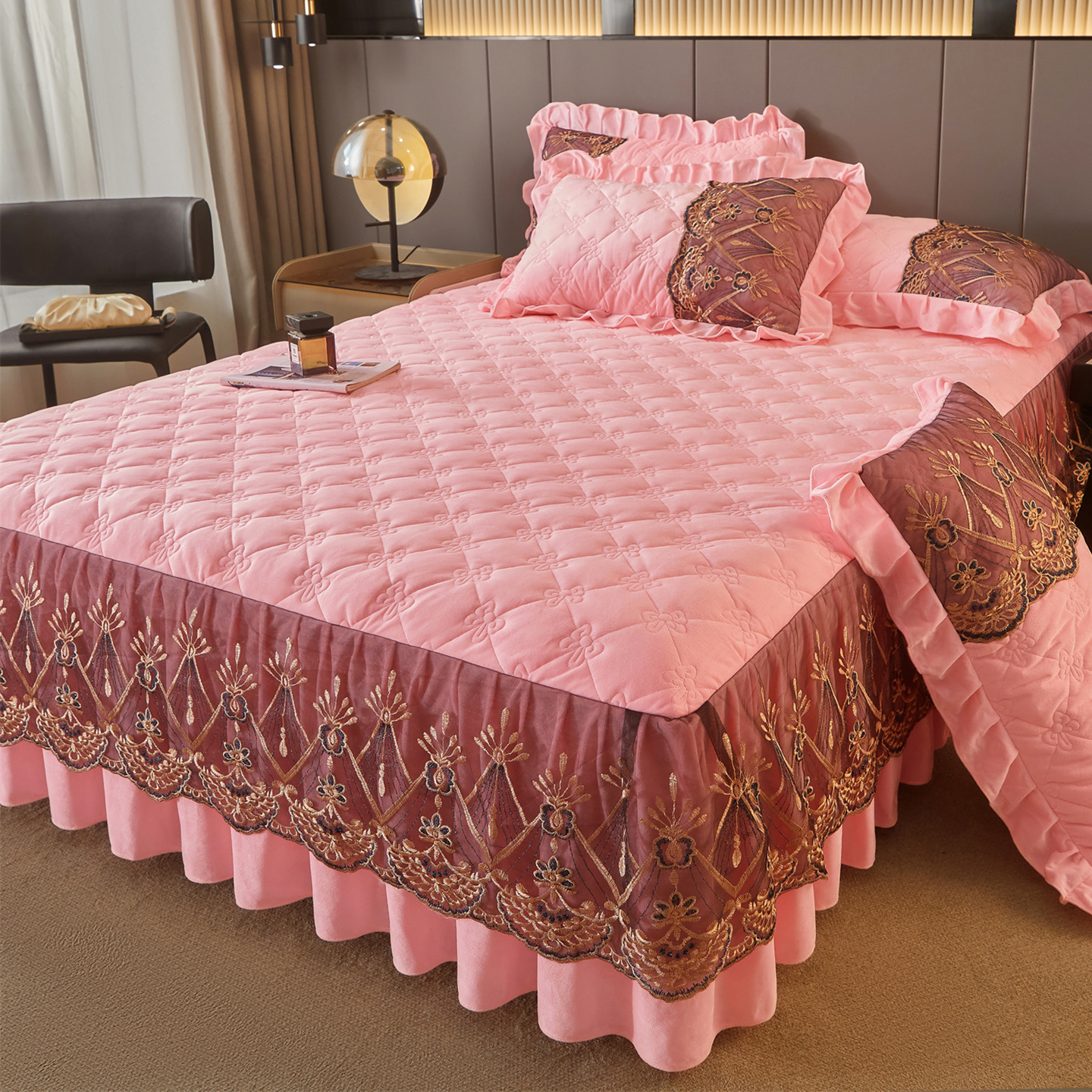 2025新款 通用 仙女风蕾丝边芦荟棉夹棉床裙三件套单件床罩床套四季