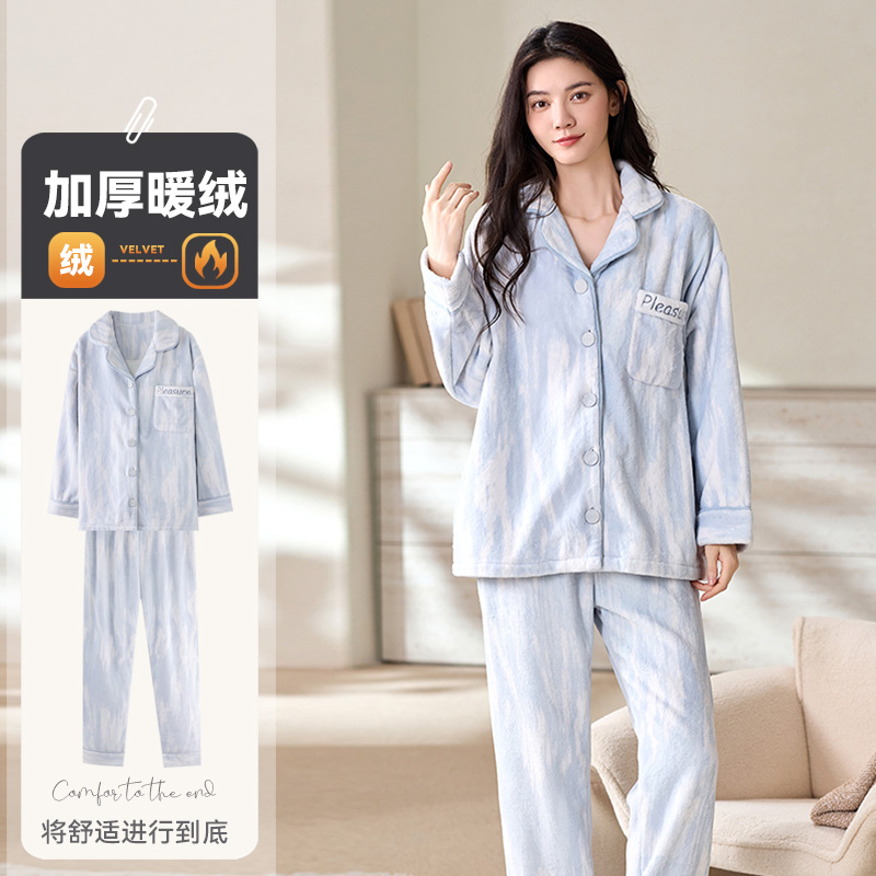 家居服春秋新款 加厚法兰绒加绒套装 珊瑚绒睡衣女秋冬季 2025年冬款