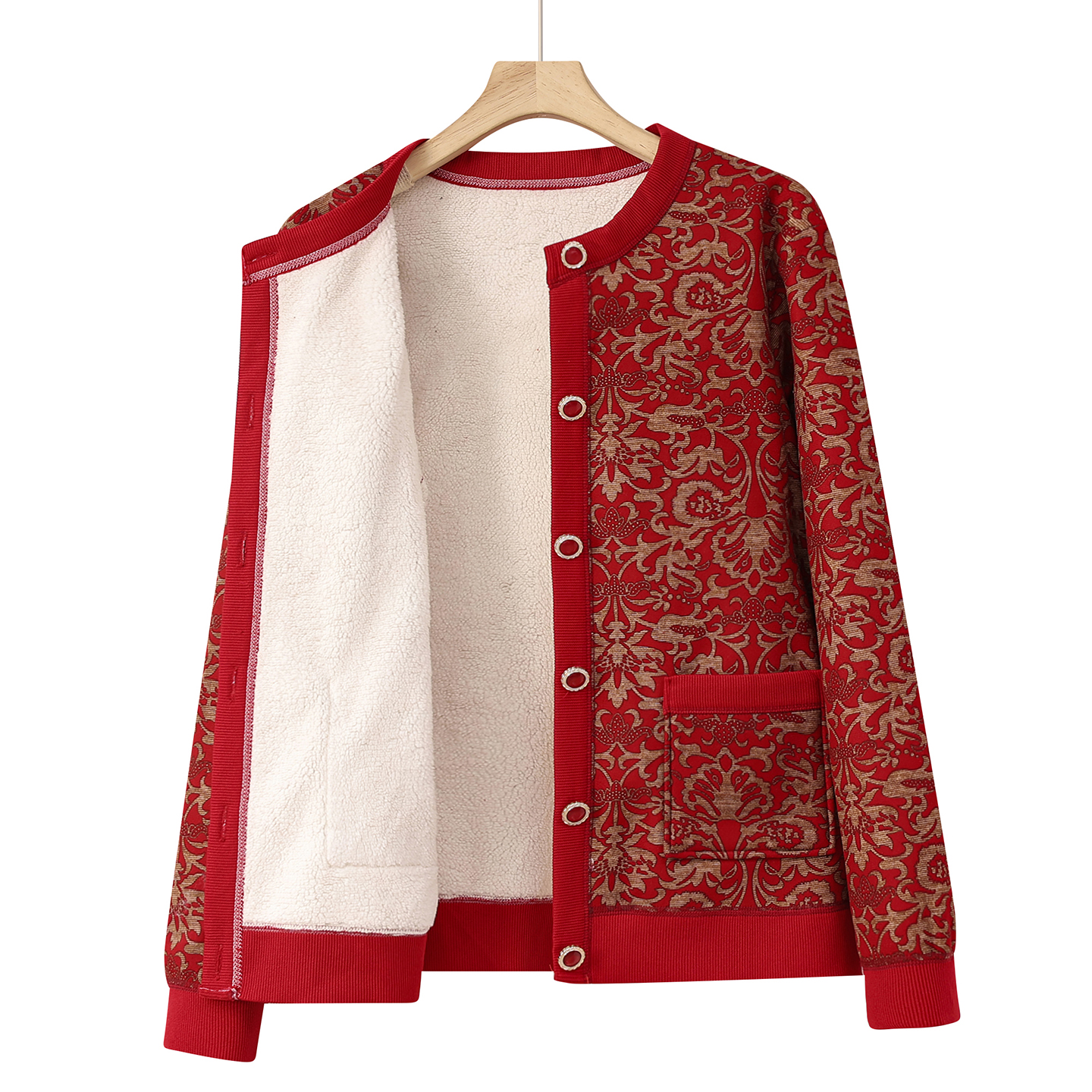 针织毛衣服 女秋冬开衫 胖妈妈冬装 加绒外套60岁70奶奶中老年人大码