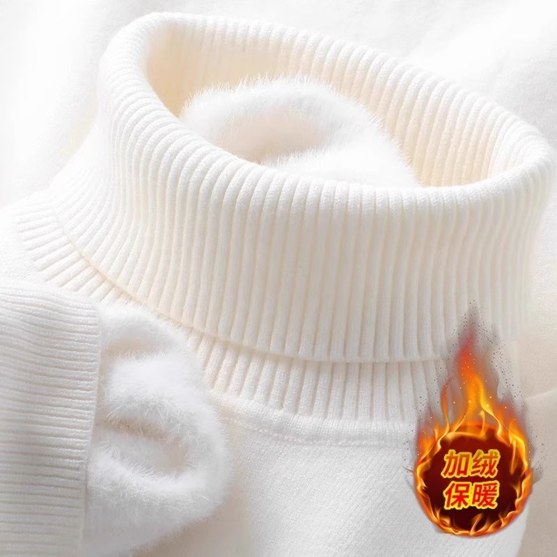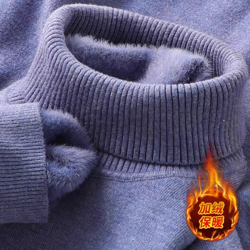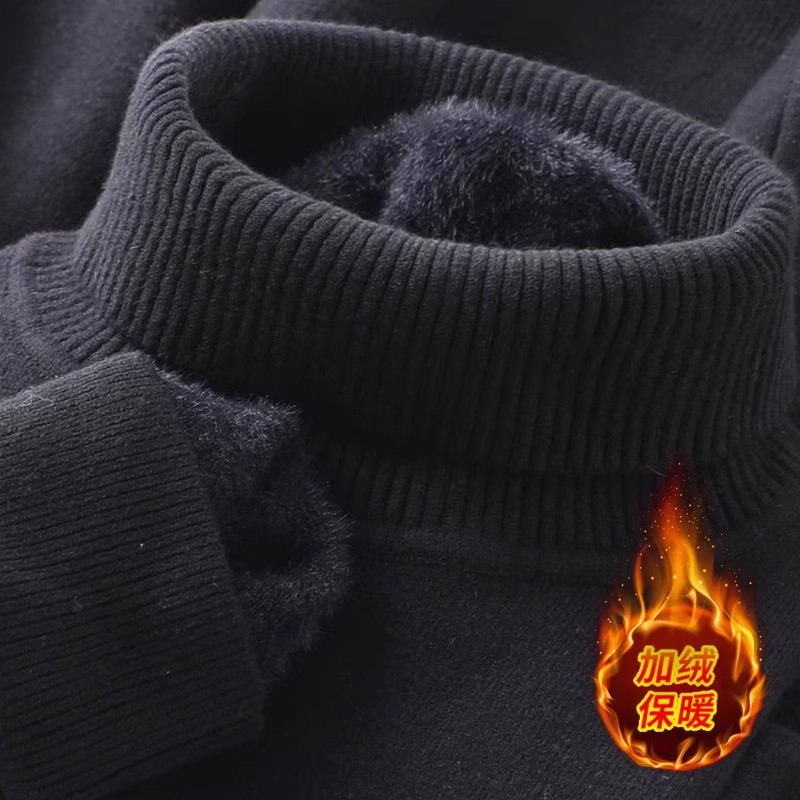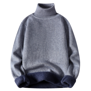 毛线衣套头针织打底衫 一体绒保暖高领毛衣男加绒加厚男士 翻领修身