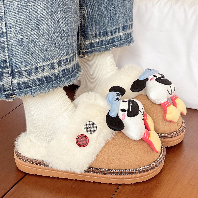 室内居家静音防滑保暖防臭情侣毛绒包头拖 2025新款 朴西棉拖鞋 女款