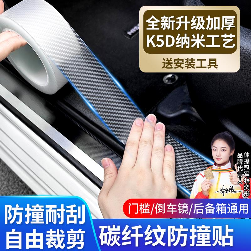 汽车门槛条防踩贴防护防刮防踢贴纸后备箱保护膜防撞条通用碳纤维