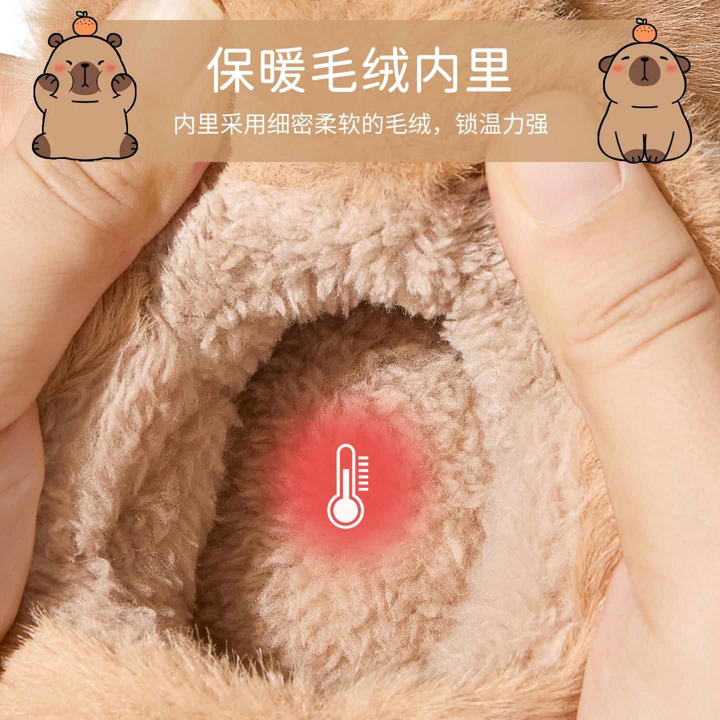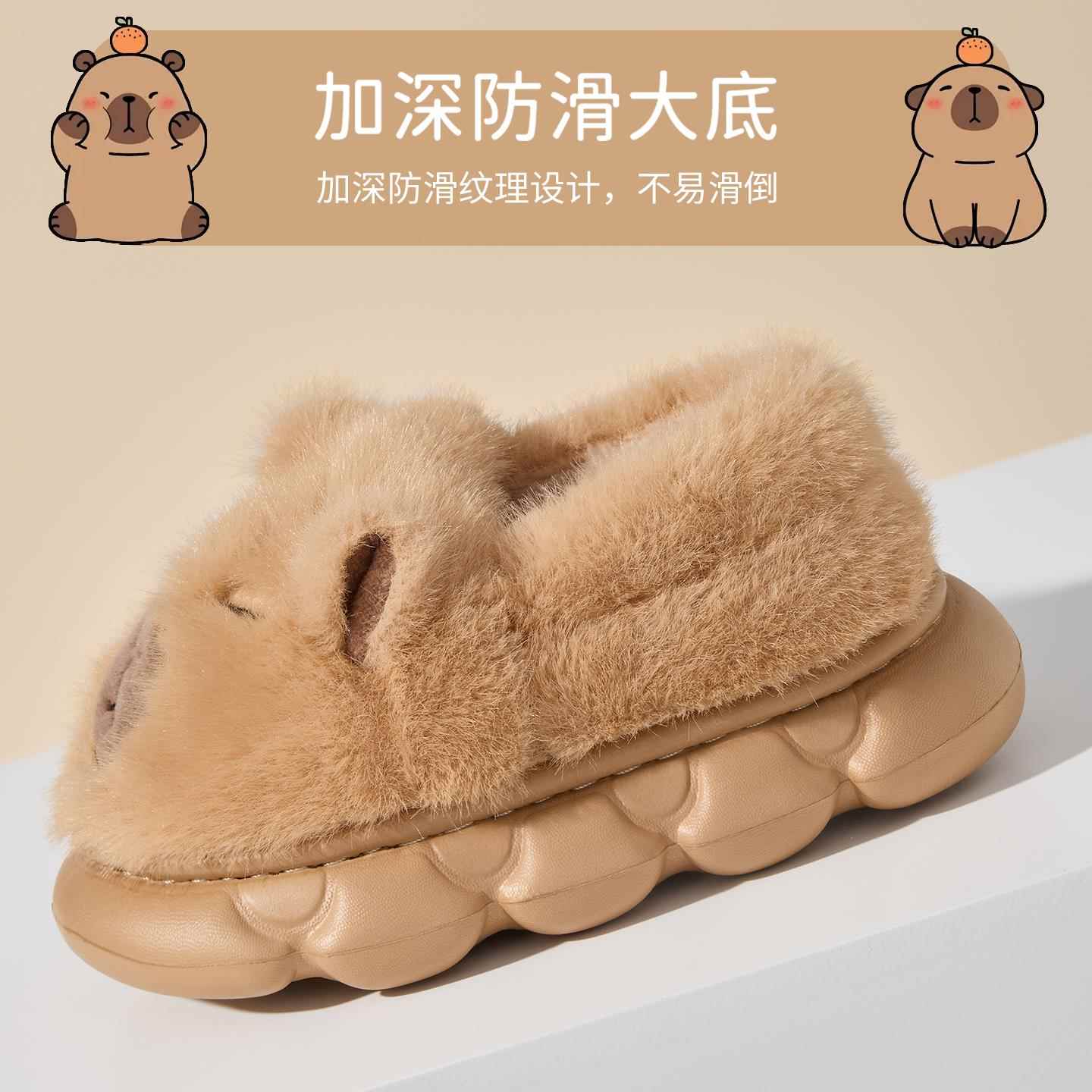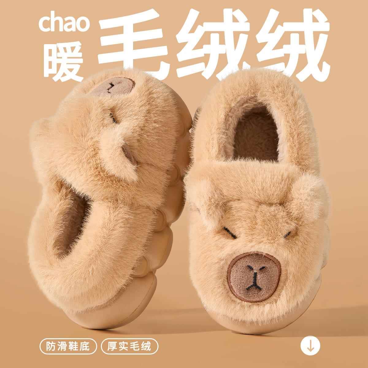 包跟保暖棉鞋 加绒加厚儿童亲子棉拖鞋 新款 可爱卡皮巴拉女2025冬季