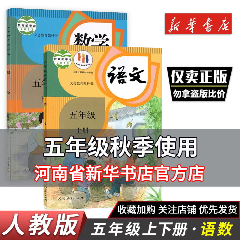 书店书本秋季 五年级上册下册语文数学英语书课本教材教科书人教部编版 5年级课本书小学英语三起点PEP部上下学期语数英新华新书正版