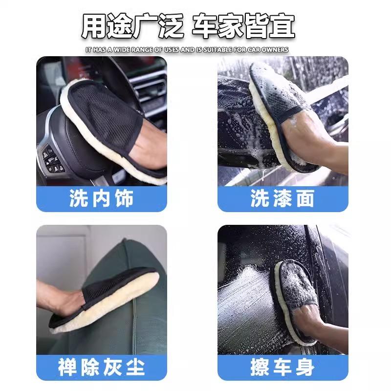 羊毛大洗车手套海绵块擦车去污汽车洗车工具纤维绒布面专用吸水巾
