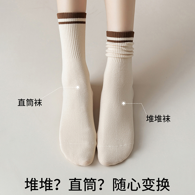 咖色女士长筒棉袜 爆款 美拉德袜子女秋冬季 加厚中筒堆堆袜2025新款