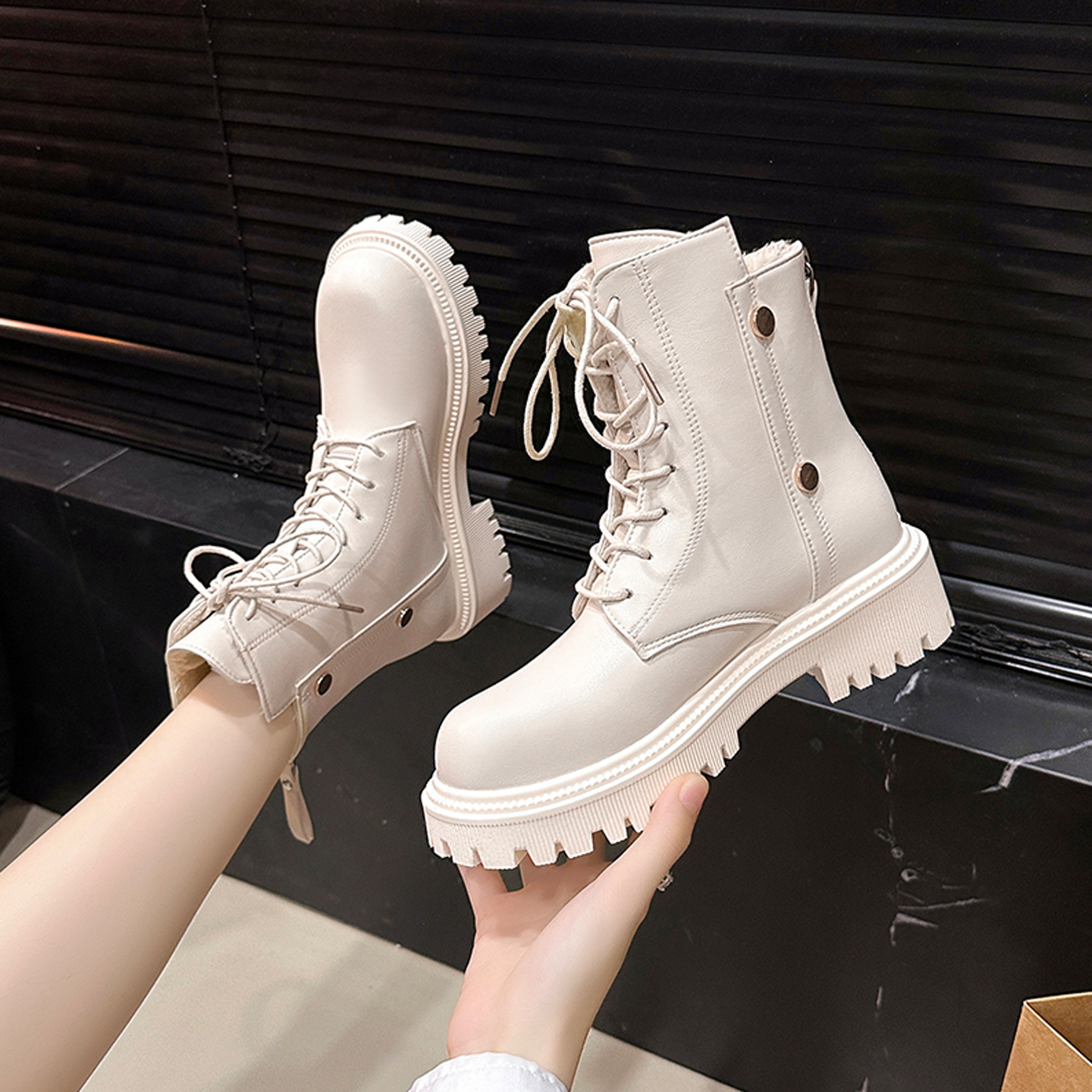 冬季 加绒靴子百搭高帮休闲皮鞋 男鞋 潮流男士 韩版 马丁靴男2025新款