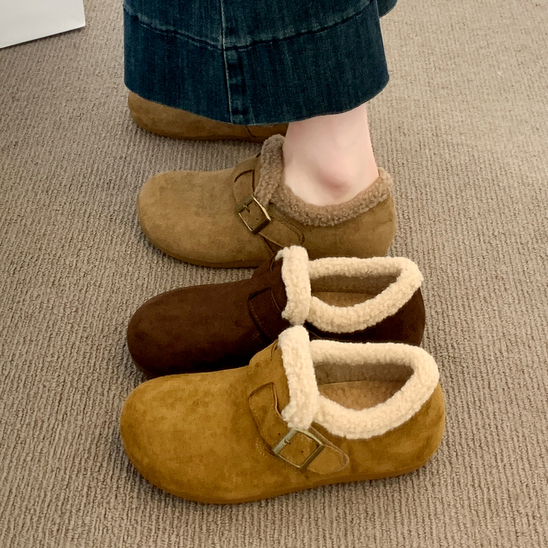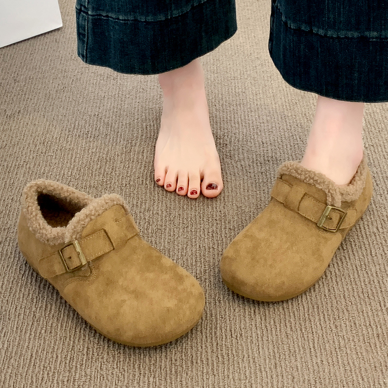 复古休闲博肯鞋 岛外DAOWAI勃肯鞋 秋冬加绒羊毛厚底4cm包头软木鞋