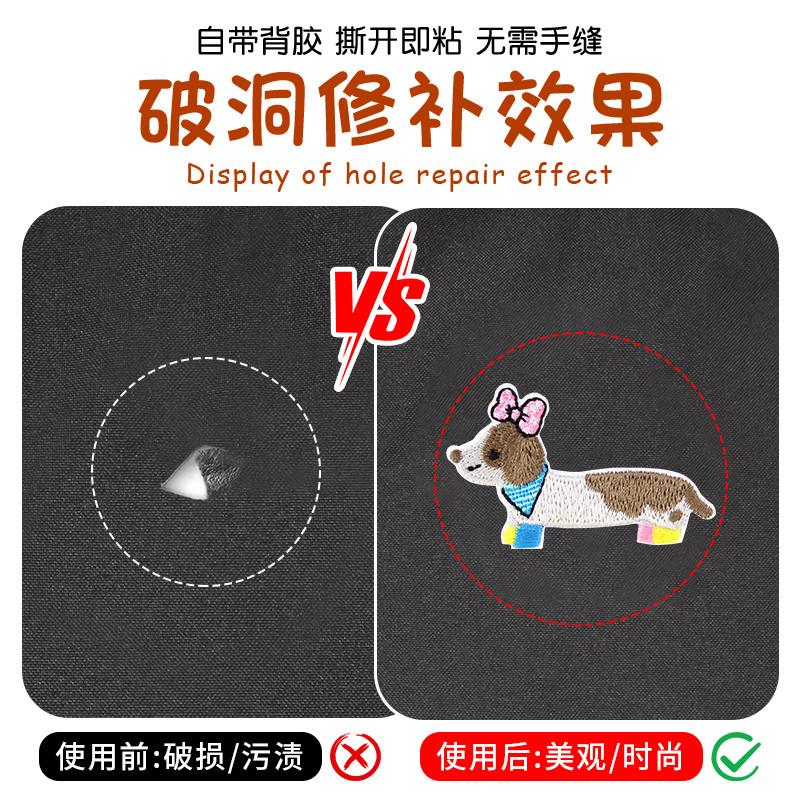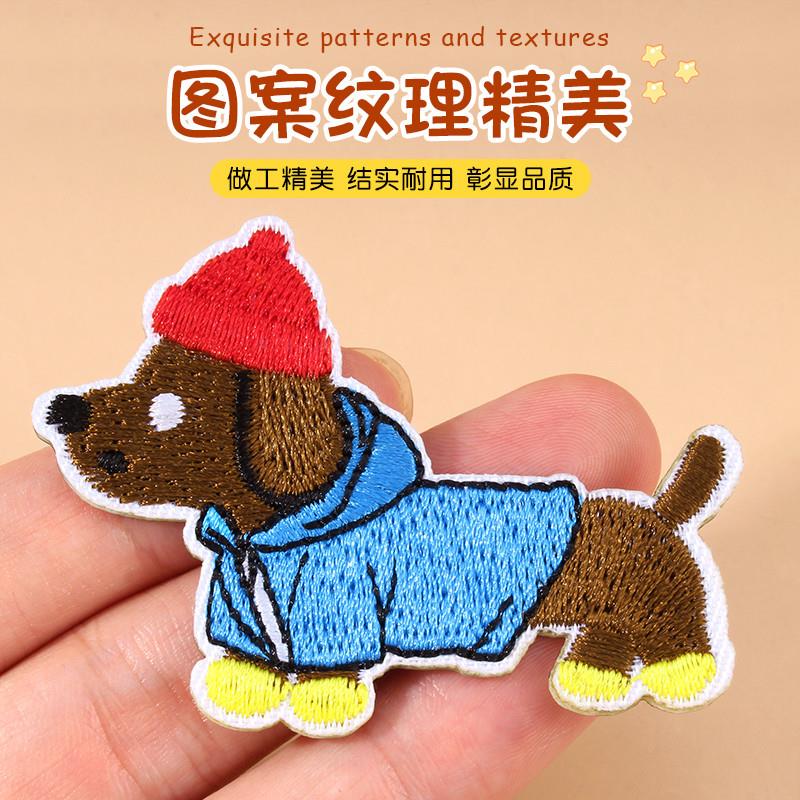 可爱小狗刺绣布贴腊肠狗羽绒衣服补丁贴可缝包包鞋 饰自粘免缝 子装