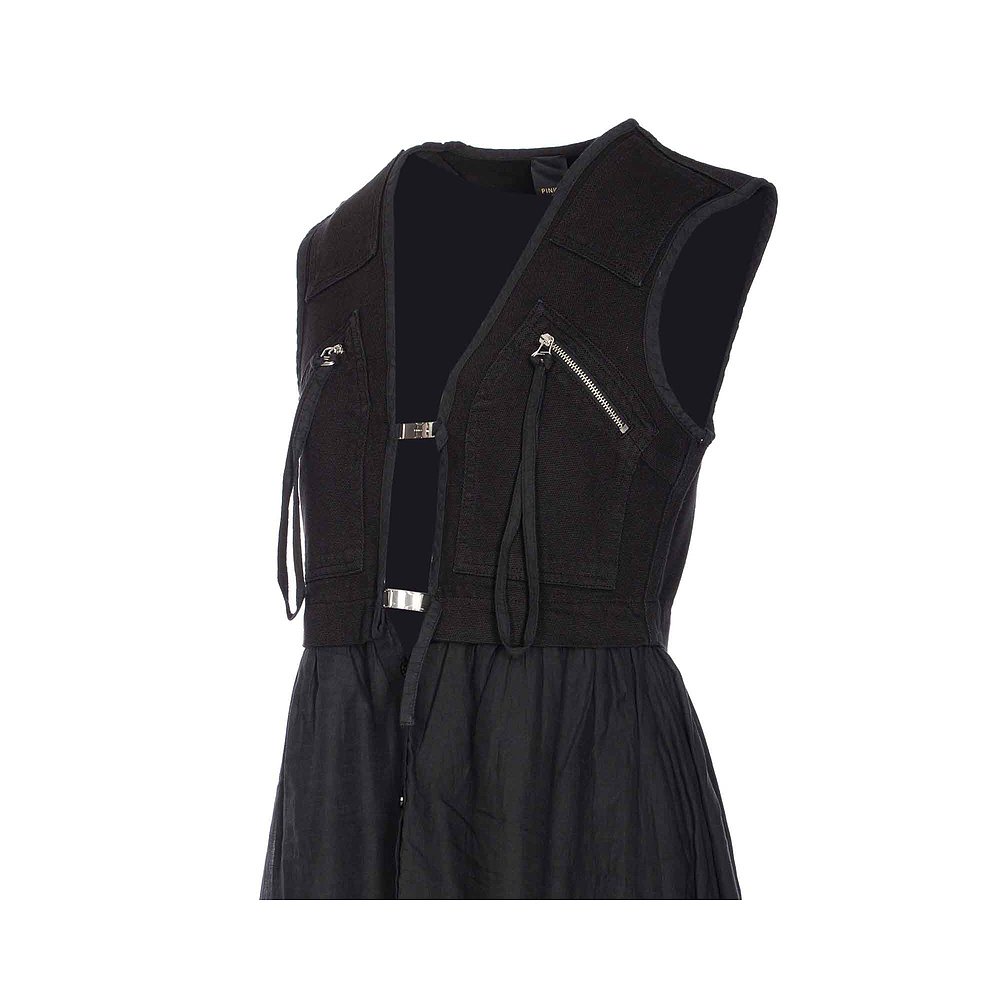 新款 连衣裙女2025秋季 知性黑色收腰中长裙10986 无袖 罗衣气质修身