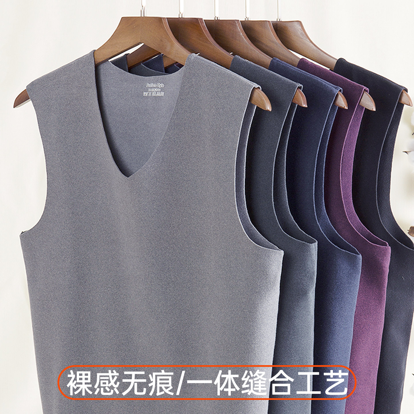 加肥加大码 坎肩马甲 德绒无痕保暖背心男加厚加绒秋冬内穿打底无袖