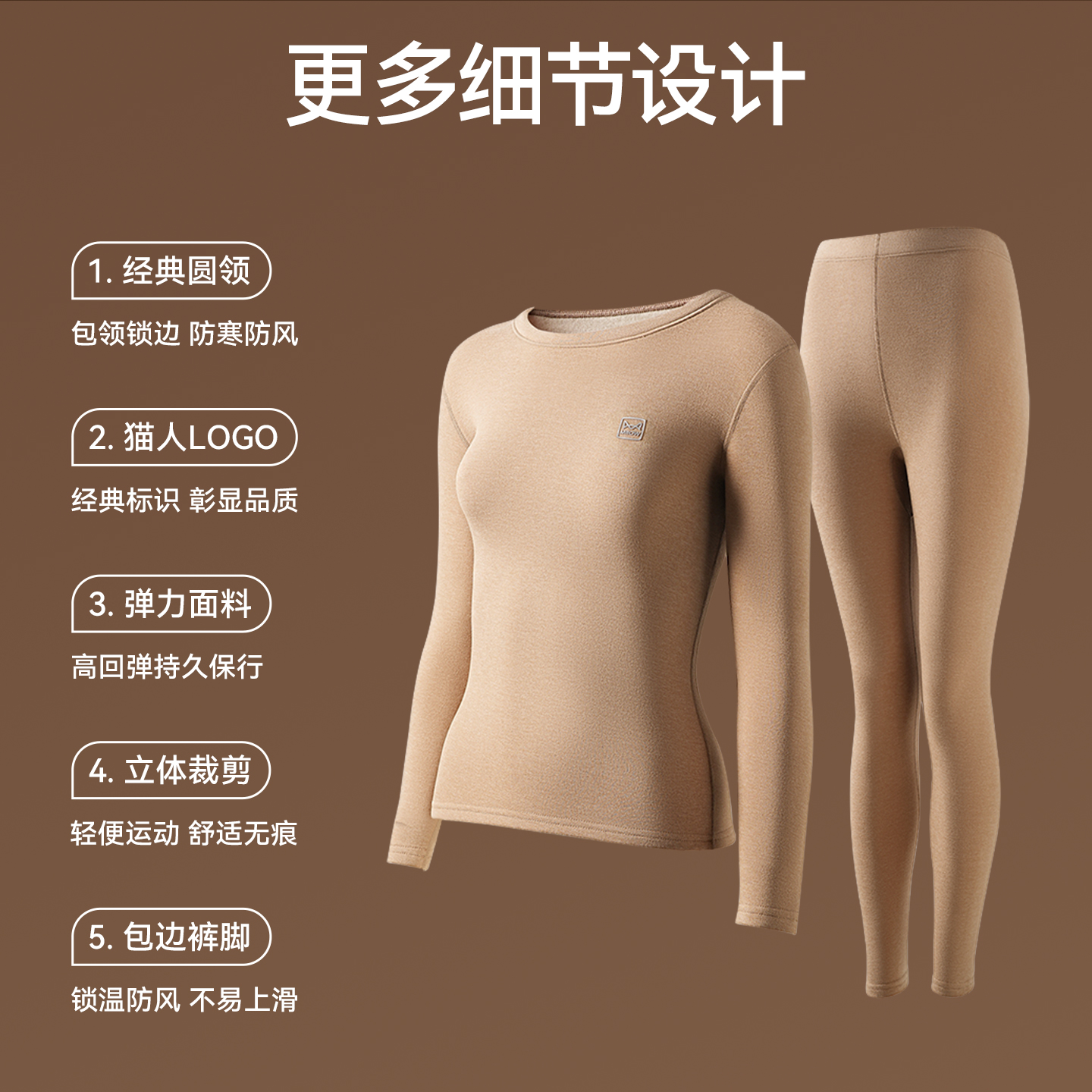 女2025新款 猫人保暖内衣女款 套装 加厚加绒德发热打底秋衣秋裤 冬季