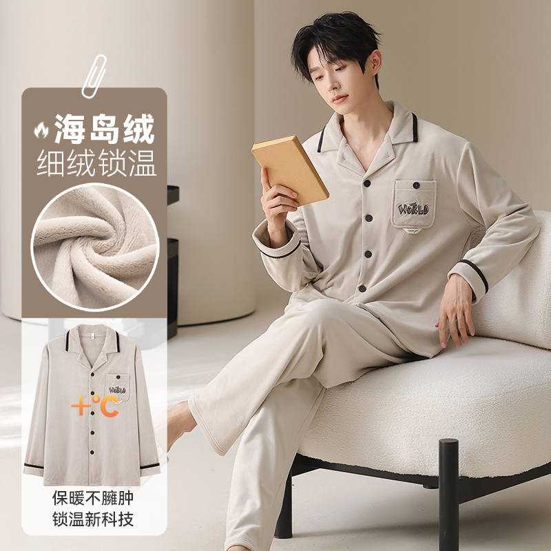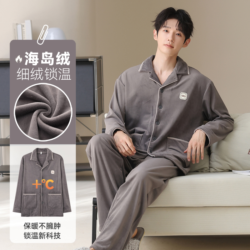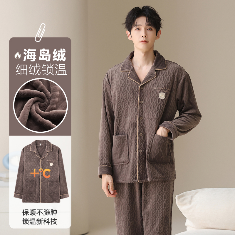 加绒加厚家居服冬款 男士 海岛绒保暖 睡衣秋冬季 帕兰朵珊瑚绒男款