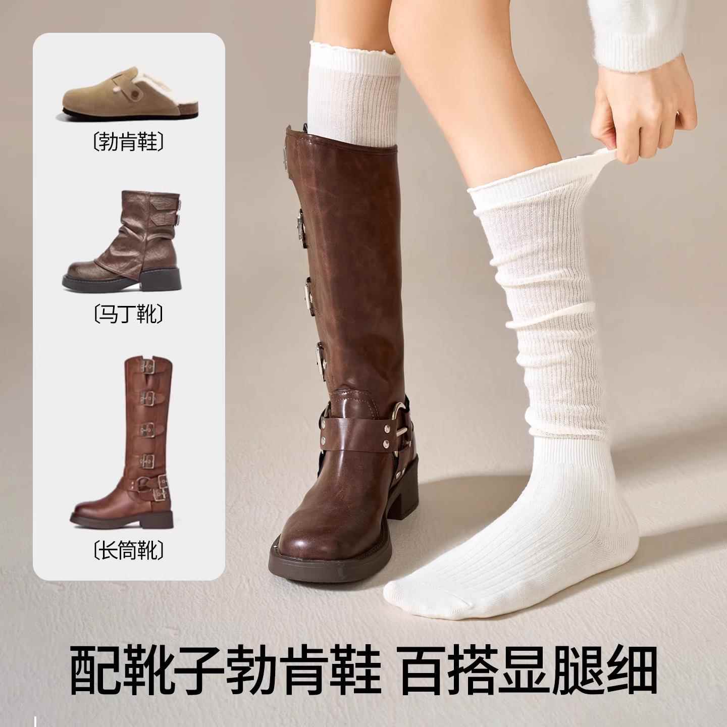 长筒靴袜子女搭配靴子小腿堆堆过膝袜春秋内搭白色大腿长筒袜羊毛