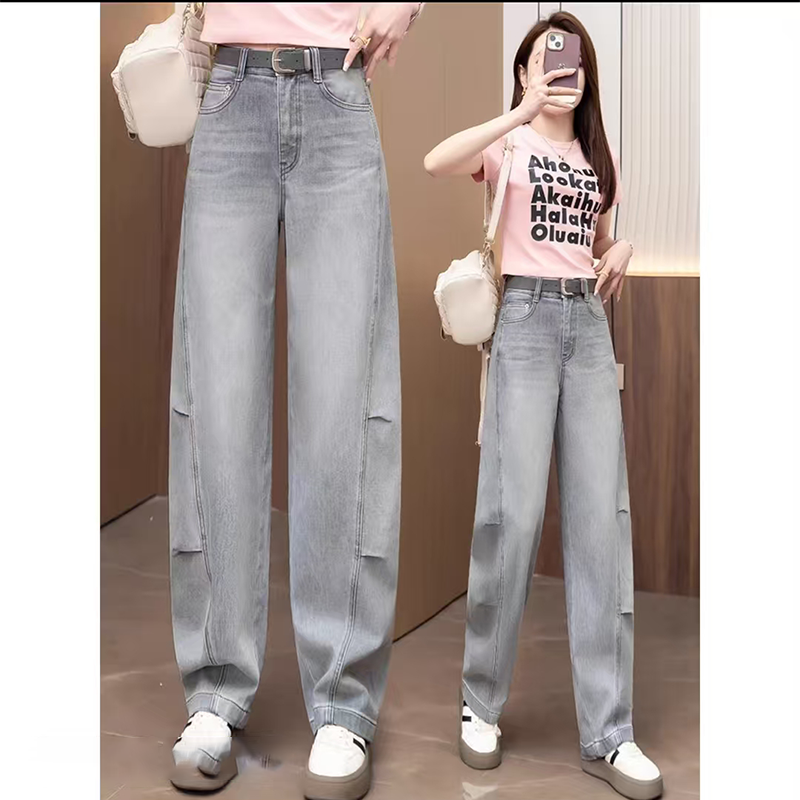 阔腿裤 高腰显瘦宽松大码 子 女加绒秋冬2025年新款 米白色直筒牛仔裤