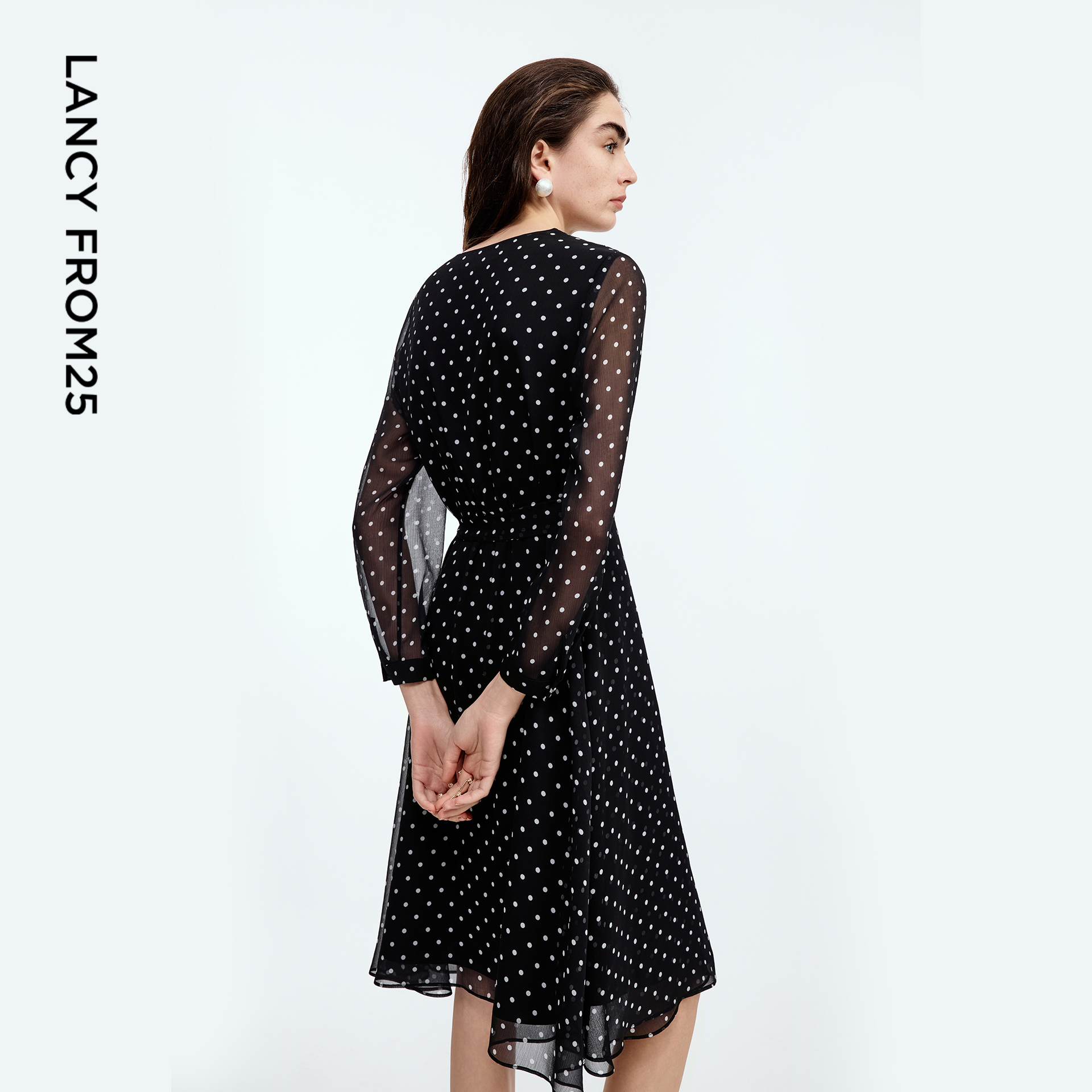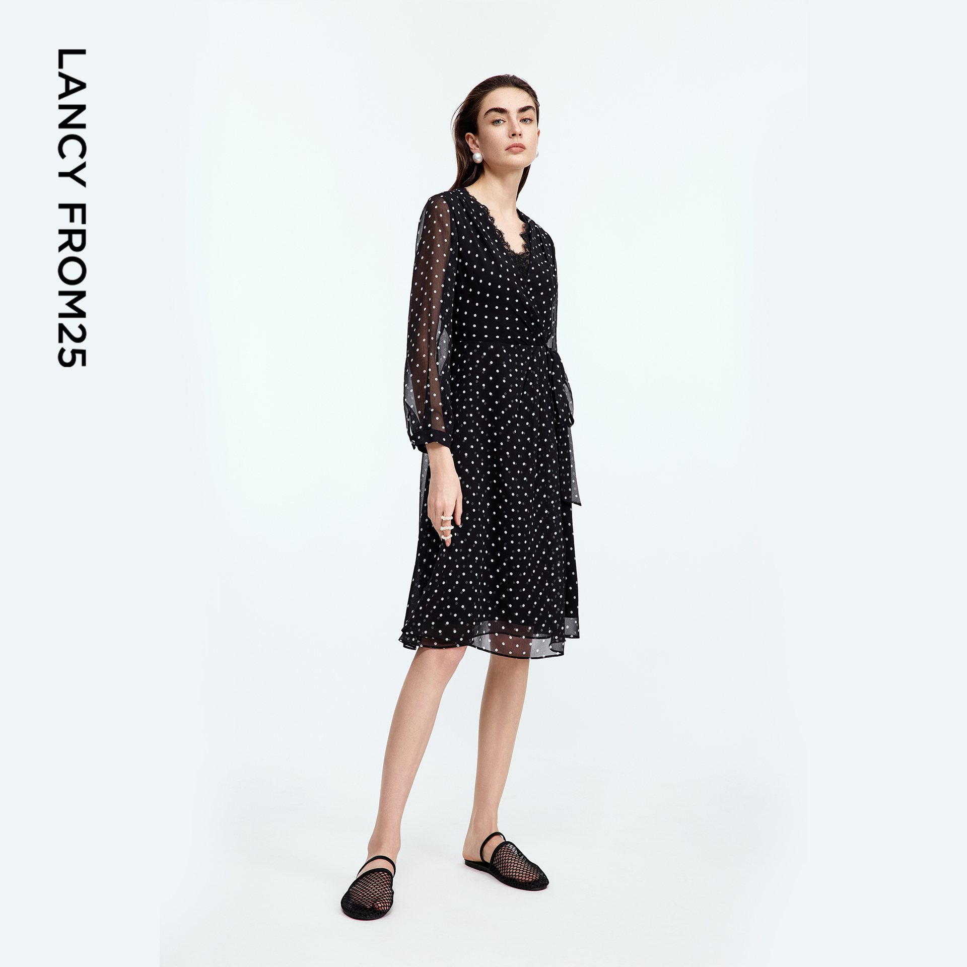 歌莉娅连衣裙女秋季 高级感气质蕾丝拼接黑色丝绒裙1C1R4H470 新款