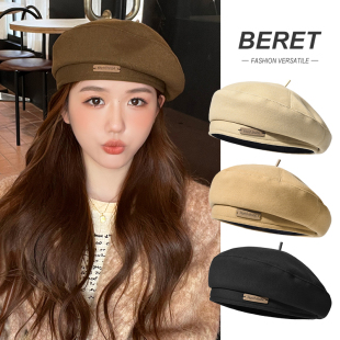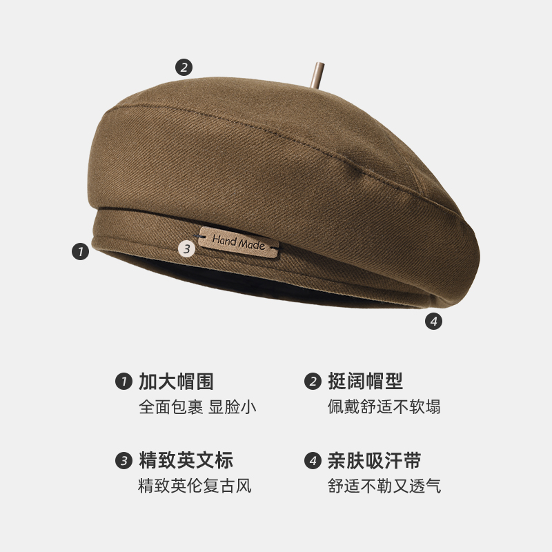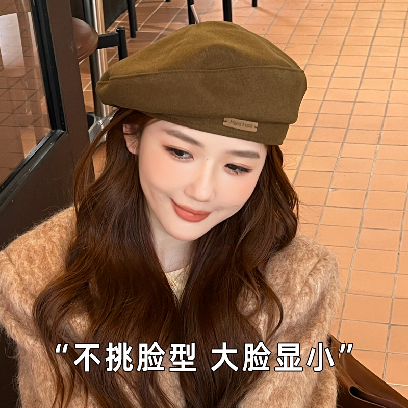 大头围显脸小咖色八角帽棕色画家帽子秋冬韩版 贝雷帽女款 2025新款