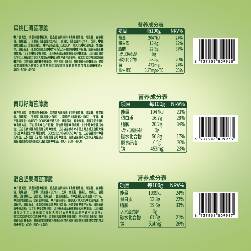 三只松鼠_南瓜籽仁海苔薄脆20g 任选20件 袋健康零食 专区99元