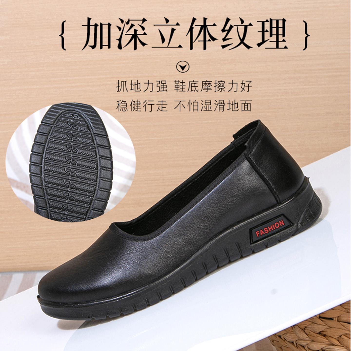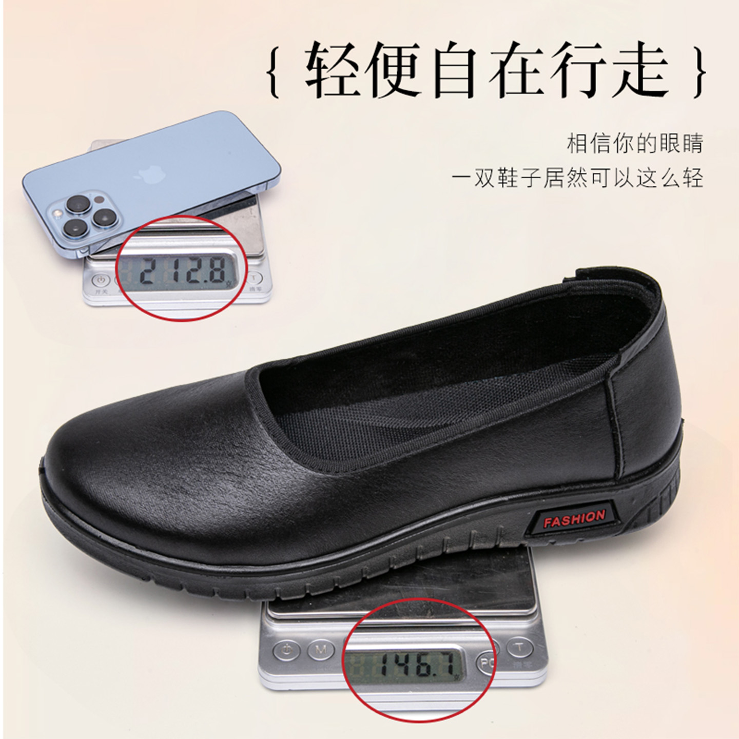 女防滑软底厨房女鞋 服务员久站不累脚酒店工作鞋 女士上班黑色皮鞋