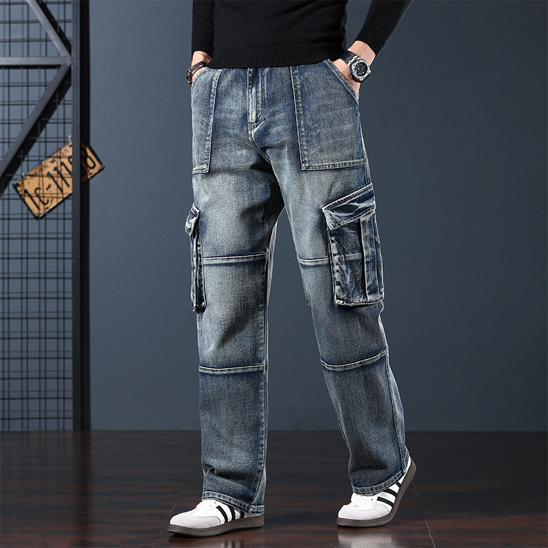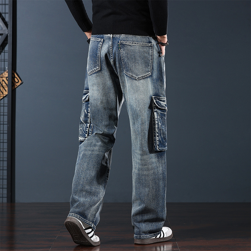 男士 阔腿休闲裤 秋冬季 直筒宽松男生美式 子 2025新款 回力浅蓝牛仔裤