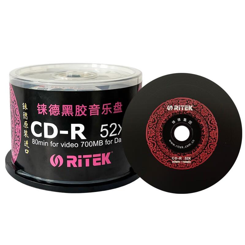 黑胶音乐50片700M桶装 空白52X刻录盘 光碟 R光盘 RITEK铼德台产CD