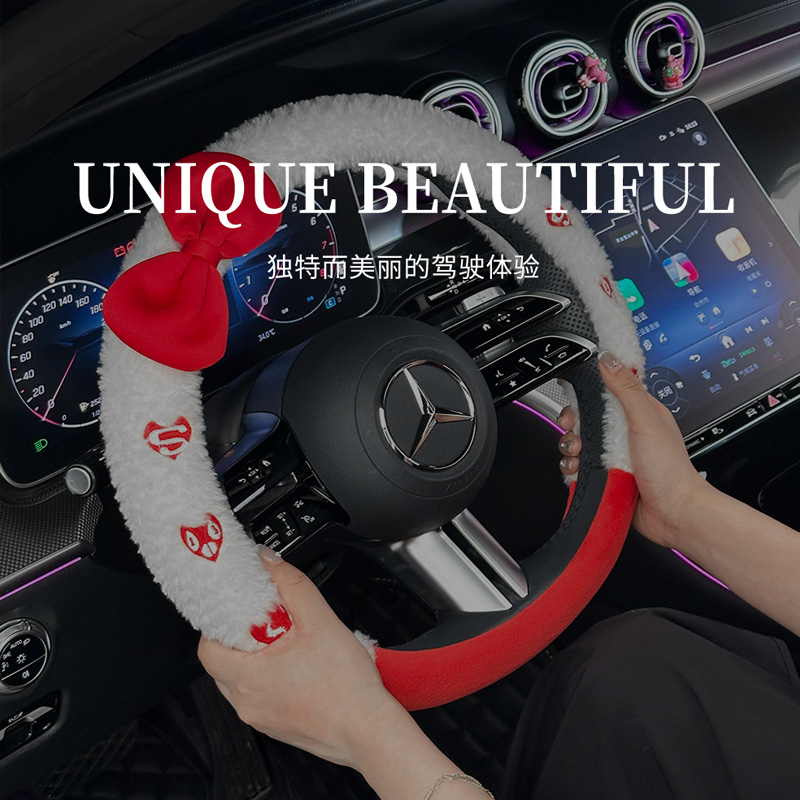 冬季 方向盘保护套汽车可爱蝴蝶结女士把套毛绒奔驰宝马奥迪大众