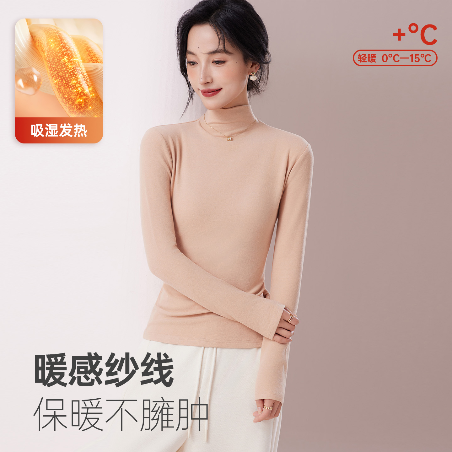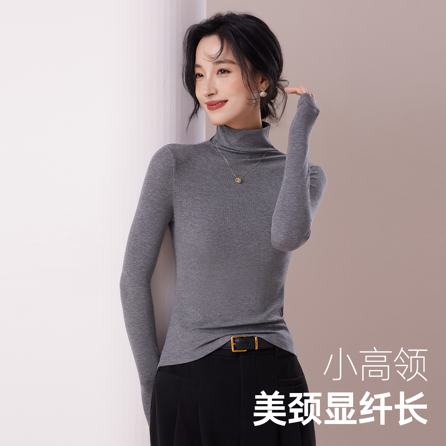 长袖 半高领打底衫 内搭加绒修身 秋冬季 针织黑色中领上衣 女2025新款
