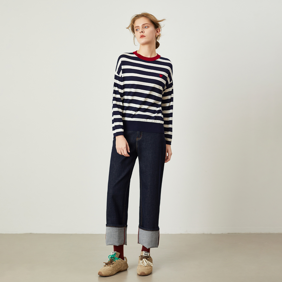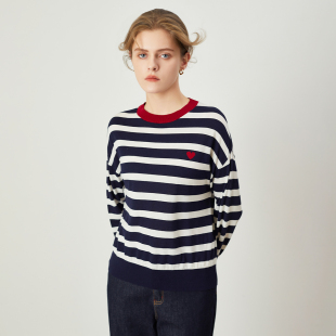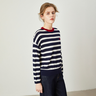 黑白条纹圆领针织衫 QS秸熙2025秋季 舒适圆领软糯毛衣 商场同款