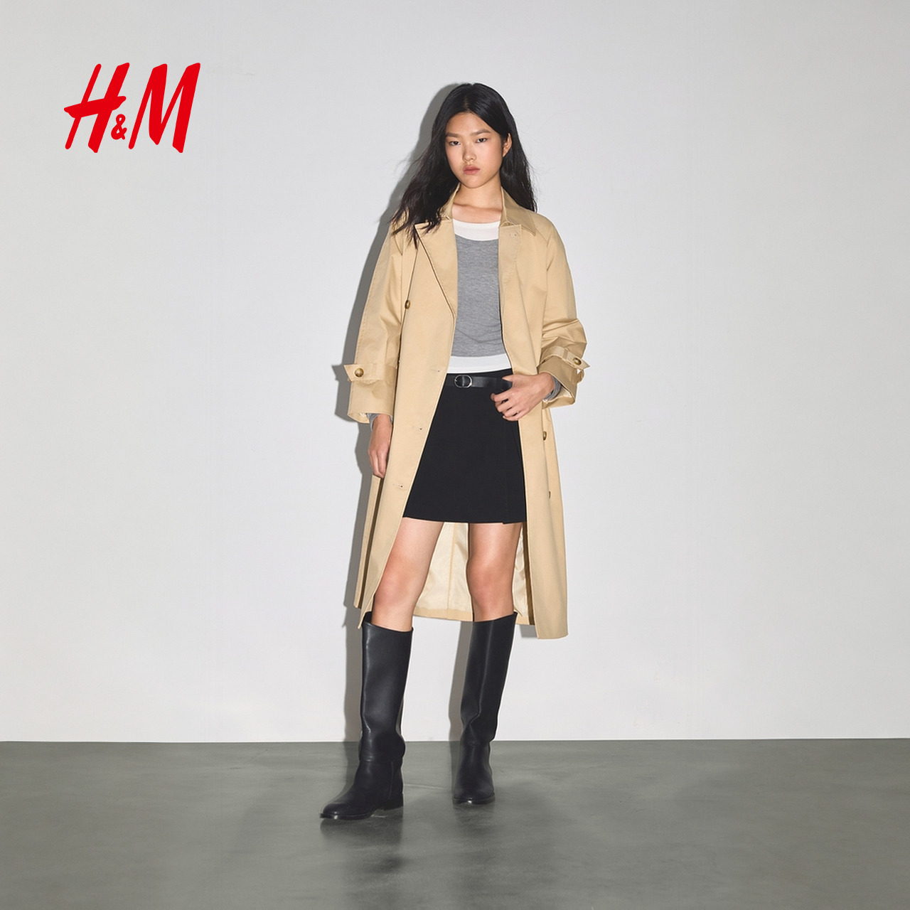 大衣 休闲英伦风小个子宽松薄款 紫涵中长款 直筒风衣外套女春秋新款