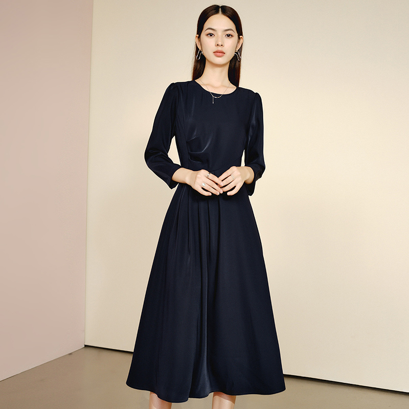 通勤裙子2025新款 朗姿复古A字立领气质修身 连衣裙 双倍免定金