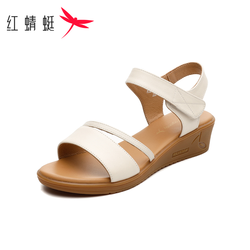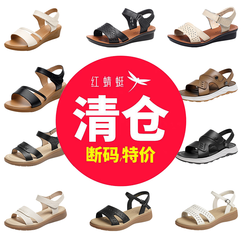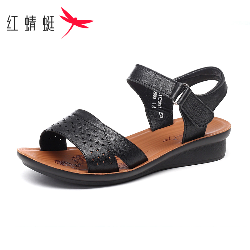 厚底一字带软底舒适百搭休闲妈妈凉鞋 女夏季 清仓红蜻蜓凉鞋 断码