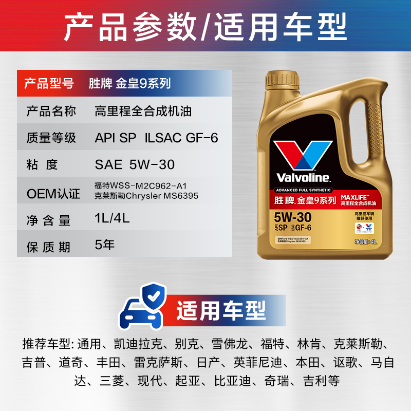 Valvoline 金皇9MaxLife 全合成机油发动机润滑油 胜牌