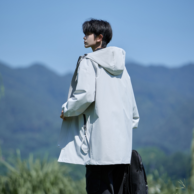 男装 风衣外套男秋季 夹克青少年潮休闲胖子加肥加大大码 中长款 新款