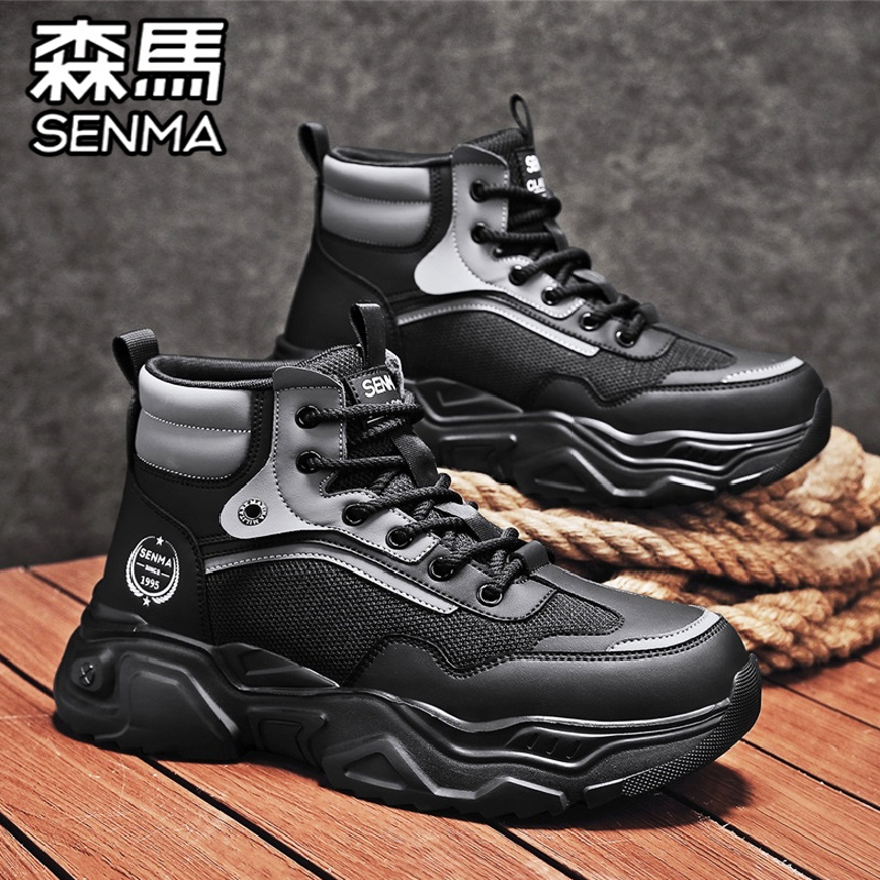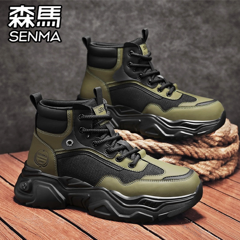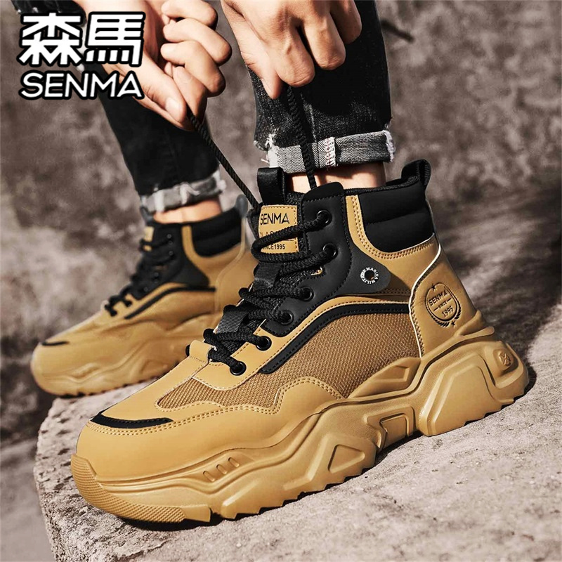 靴子 高帮运动休闲户外登山大黄靴厚底增高工装 森马马丁靴男鞋 秋季