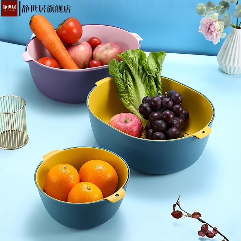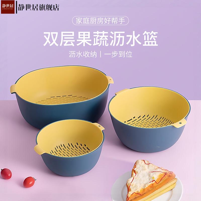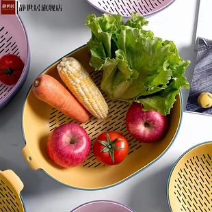 果蔬双层沥水篮生活厨房神器家用水果盘洗菜篮L 双层沥水篮