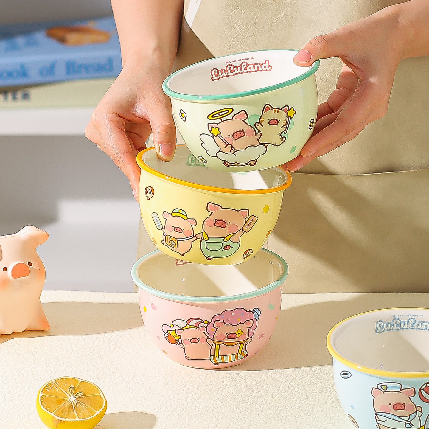 陶瓷双耳宝宝碗奶油风儿童早餐吃饭碗防烫蒸蛋碗沙拉碗小碗家用