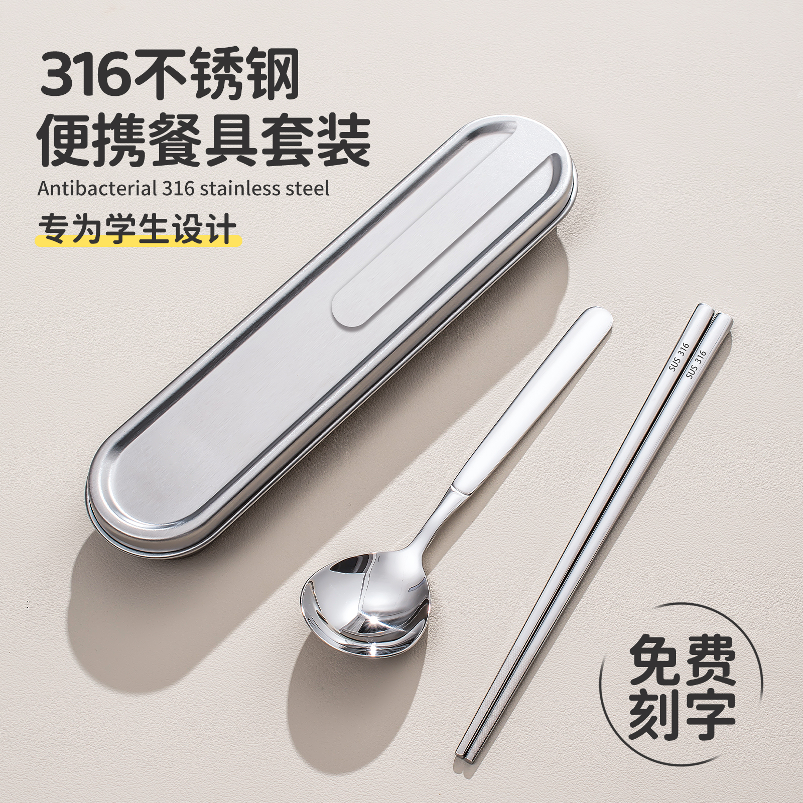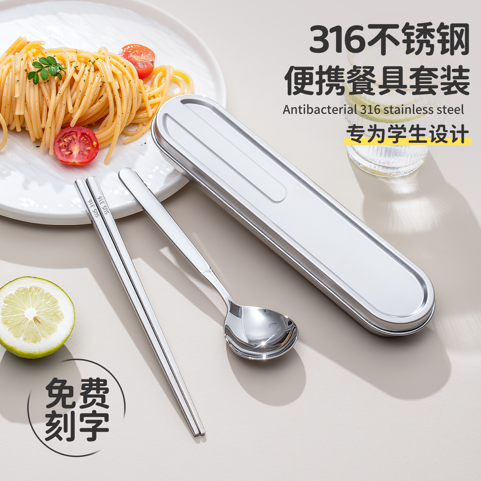 316筷子勺子套装 儿童餐具一人用小学生专用便携餐具三件套收纳盒