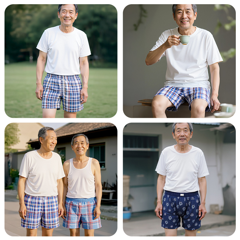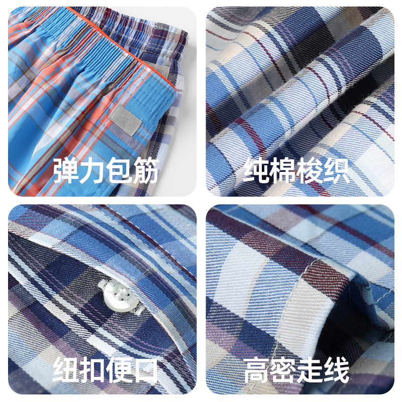 爸爸内裤 男纯棉阿罗裤 老式 睡裤 七匹狼秋季 全棉格子四角裤 家居短裤