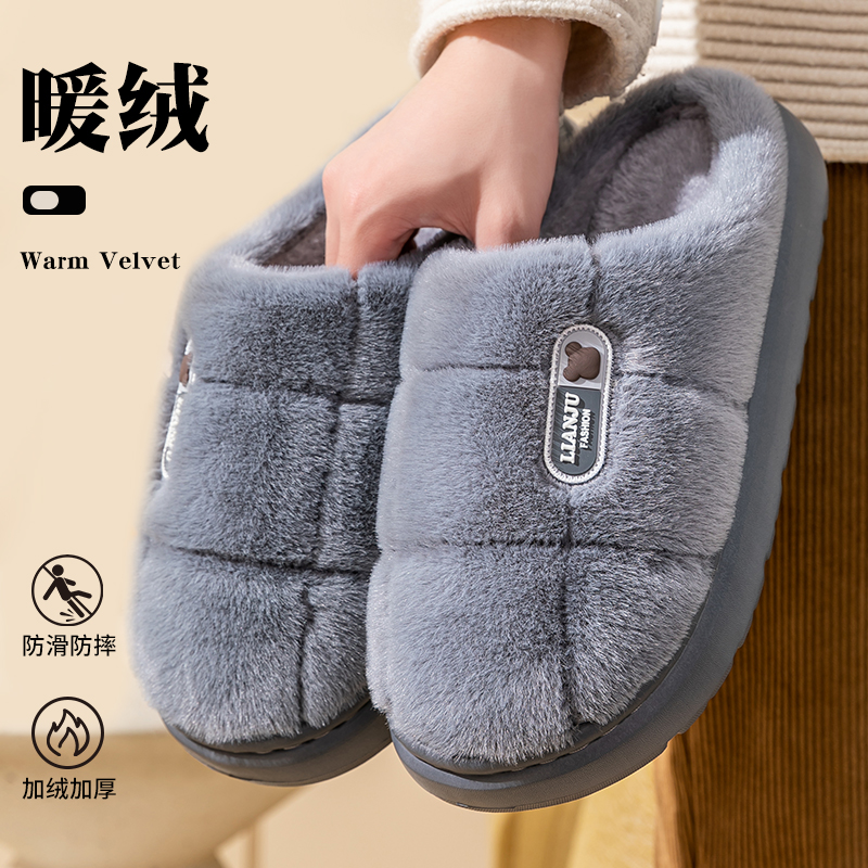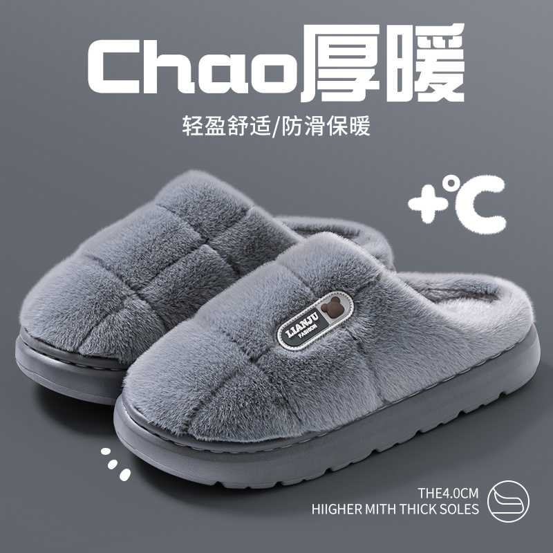 棉拖鞋 室内家居厚底保暖防滑毛绒拖鞋 男士 外穿2025新款 男 冬季 大码