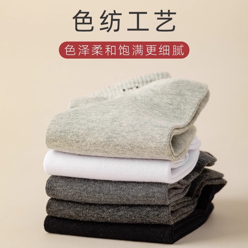 袜子男春秋季 黑白中筒袜白色黑色 纯棉防臭短袜吸汗透气运动袜男款