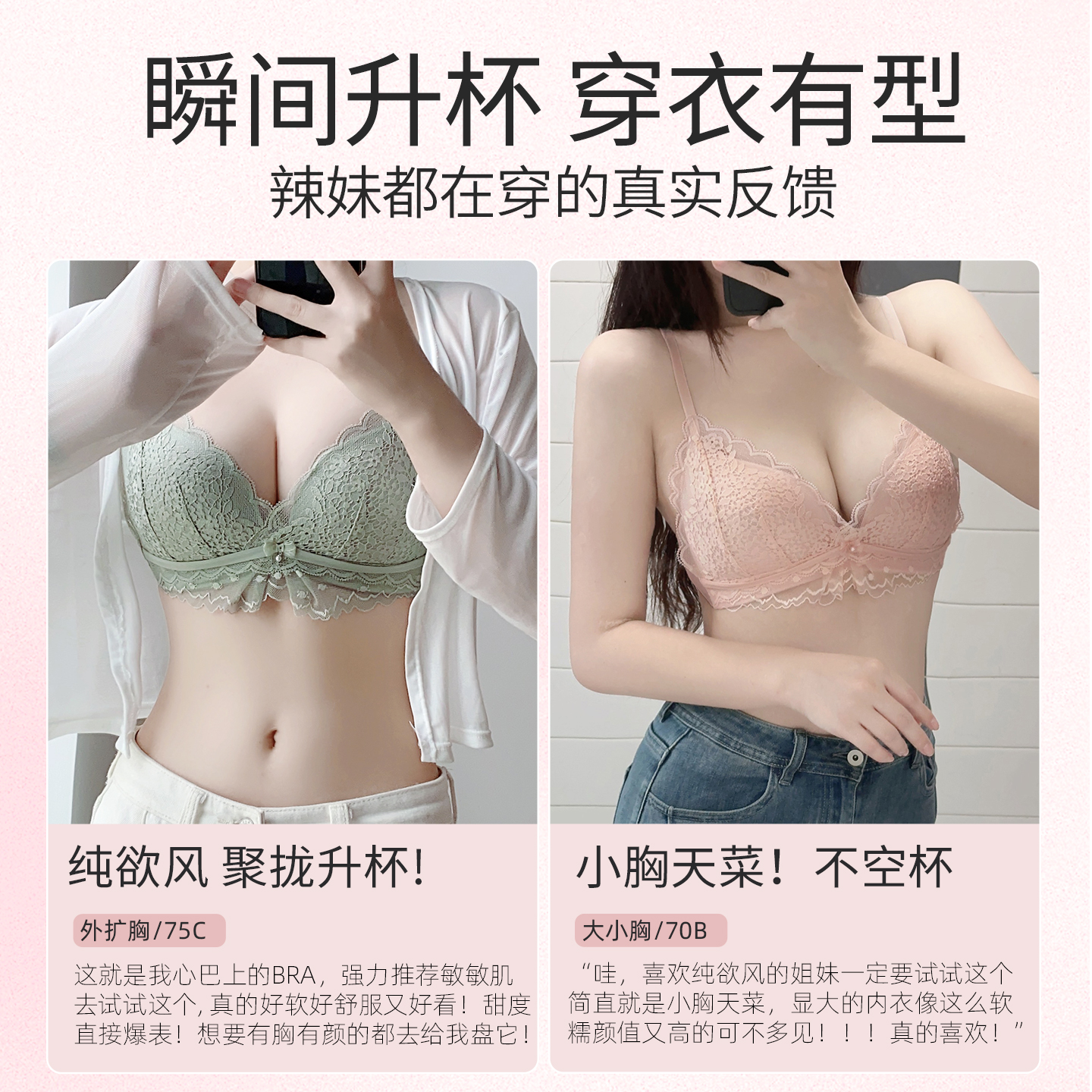 草本初色内衣女细肩带无痕夏季 大胸显小胸聚拢凉感无钢圈文胸 薄款