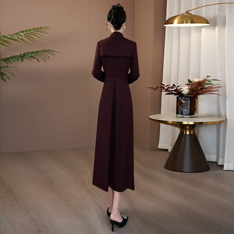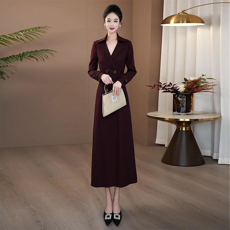 早秋独特超好看外套女款 今年流行爆款 秋3142 风衣2025新款 酒红长款