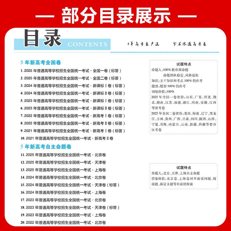 金考卷特快专递5年高考真题汇编2026语文数学英语物理化学生物政治历史地理生物通用版 高考高三总复习资料一轮二轮必刷卷五年真题