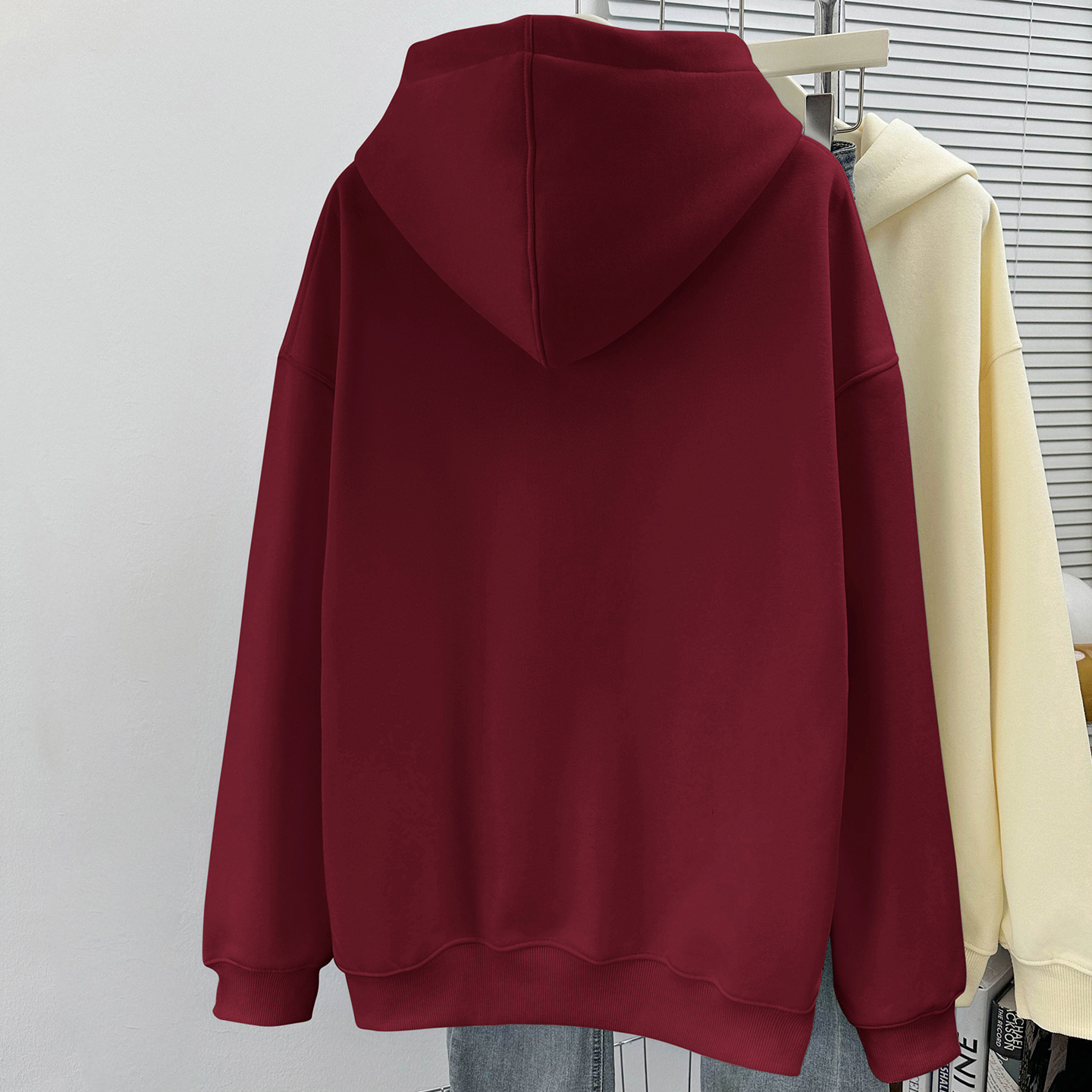 NR真维斯复古chic酒红色小狗卫衣女2025秋季 慵懒宽松连帽外套 美式