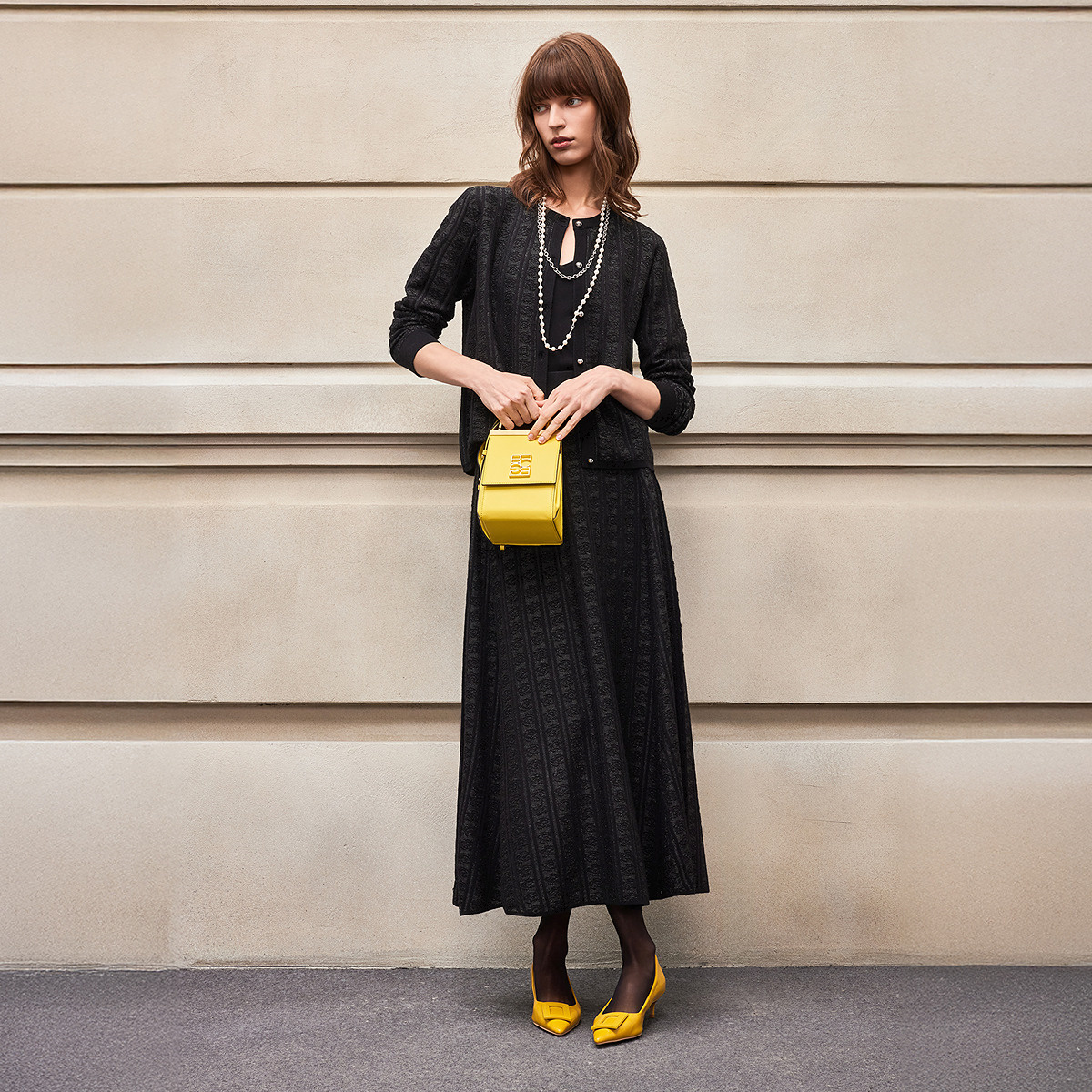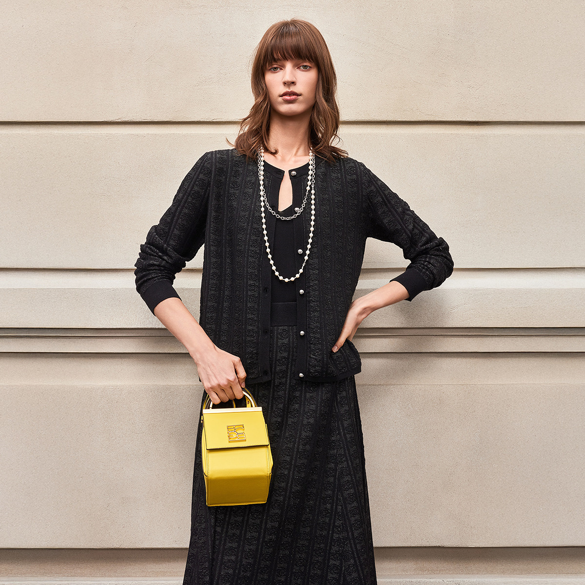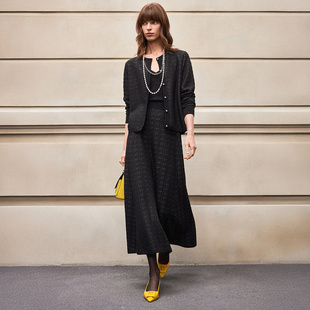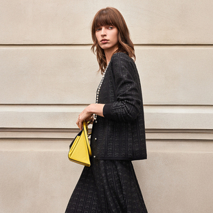 外套女 流行优雅气质黑银亮丝提花玫瑰针织开衫 BCBG25早秋新款 时尚
