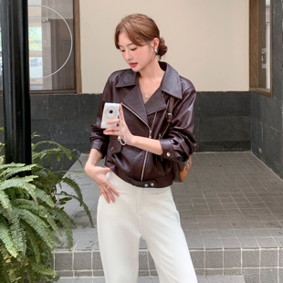 小个子pu软皮夹克 超火酷飒风女士短款 黑色皮衣外套女2025新款 女款
