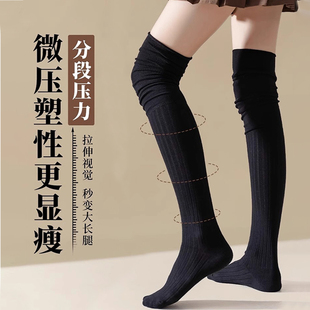 Enjoy JK袜子强压黑色小腿长袜大腿长筒袜 it压力瘦腿过膝袜女夏季