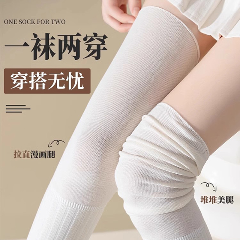 长筒袜女春秋款 堆堆过膝袜jk长腿配长靴子孕妇秋冬白色大腿袜长袜